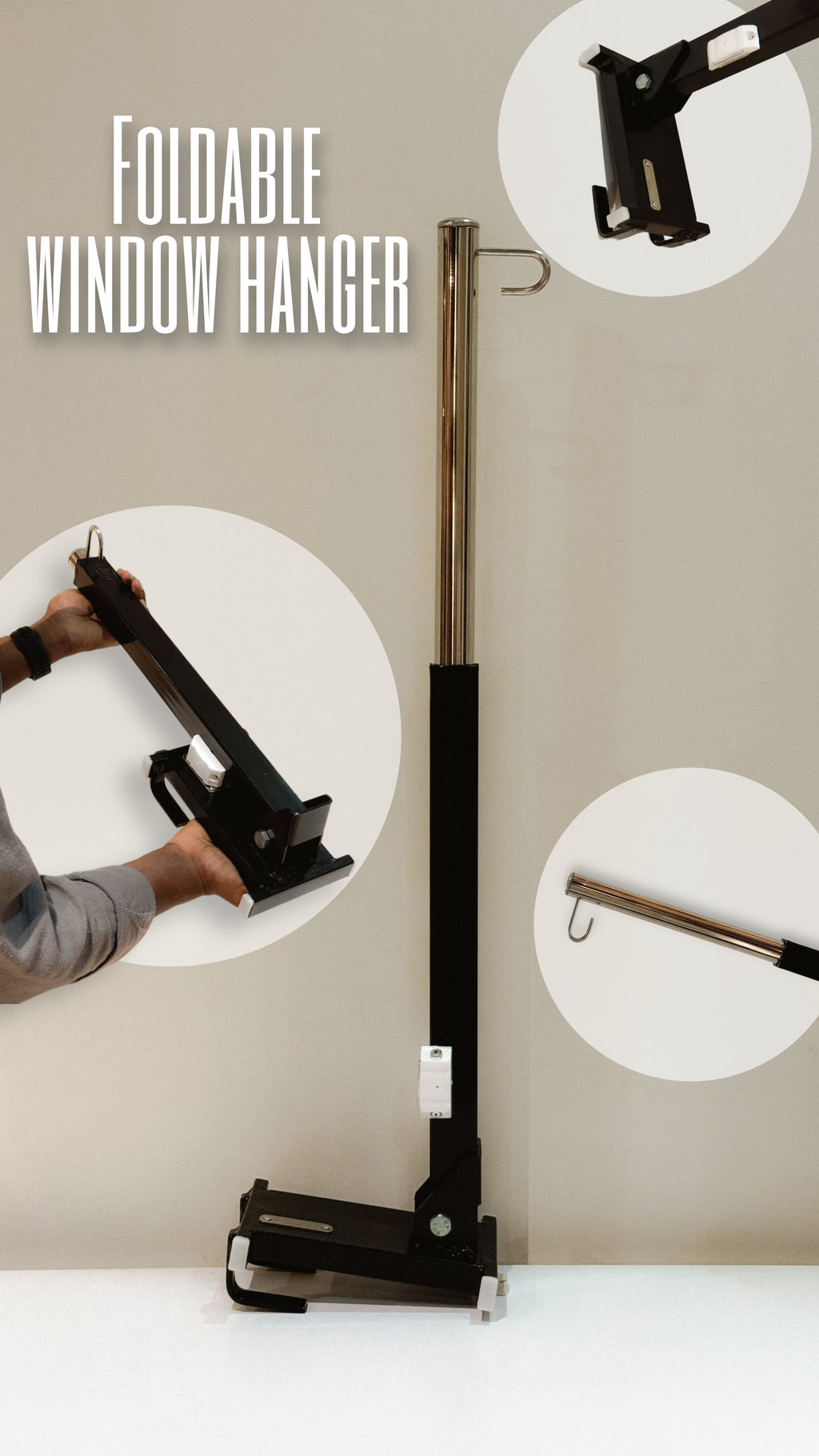 Foldable Window Baby Cradle Hanger | Foldable & Adjustable Metal Cot Hanger | Heavy-Duty No-Drill Design | Black & Silver
